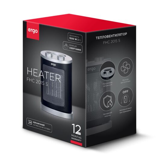 ERGO FHC 2015 S і ERGO FHC 2015 - компактні переносні тепловентилятори привабливого дизайну з керамічним нагрівальним елементом. Вони призначені для обігріву невеликих побутових приміщень - офісів, гаражів, кіосків. Прилади безпечні в експлуатації: у конструкції немає відкритої розпеченої спіралі, корпус виготовлений з міцного негорючого пластику, встановлений захист від перекидання.