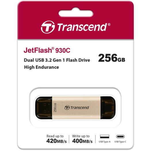 Флеш-накопичувач JetFlash 930C оснащений двома роз'ємами USB Type-A та Type-C. Завдяки використанню флеш-пам'яті 3D NAND та інтерфейсу USB 3.2 Gen 1, флеш-накопичувач Transcend JetFlash 930C забезпечує швидкість передачі до 420 МБ/с. Висока ємність до 512 ГБ забезпечує достатньо місця для зберігання медіафайлів та ігрових файлів. Transcend JetFlash 930 - відмінний вибір, якщо ви шукаєте портативний та стильний флеш-накопичувач для ігор.