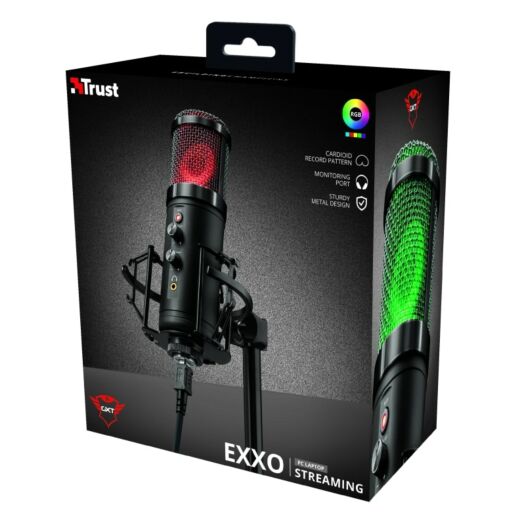 Потоковий мікрофон Trust GXT 256 Exxo USB поєднує в собі чудову якість звуку і стиль. Завдяки привабливому дизайну зі світлодіодним освітленням в різних колірних настройках ви можете стильно підкреслити якість ваших записів. Крім того, його металева стійка гарантує оптимальну стабільність, або ви можете прикріпити мікрофон до будь-якого сумісного мікрофонного кронштейну, використовуючи універсальне 5/8 '' гвинтове креплення. А завдяки USB-кабелю довжиною 1,8 м (знімний) ви можете розмістити мікрофон в будь-якому місці на своєму столі.