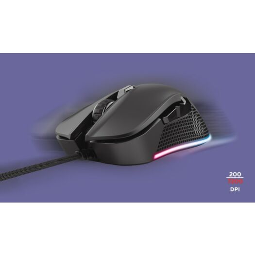 Ігрова миша з високоточним датчиком (7200 точ. / Дюйм) і світлодіодним RGB-підсвічуванням. Світлодіодна RGB-підсвічування з програмованим режимом зміни кольорів. 6 чутливих кнопок, в т. ч. 2 кнопки для великого пальця. Текстуровані бічні поверхні для оптимальний захоплення. Додаткове ПО для програмування кнопок, світлових ефектів, профілів і макросів. Гладкі насадки для ковзання з мінімальним тертям
