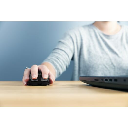 Акумуляторна бездротова миша з сучасним дизайном та гумовим покриттям.
