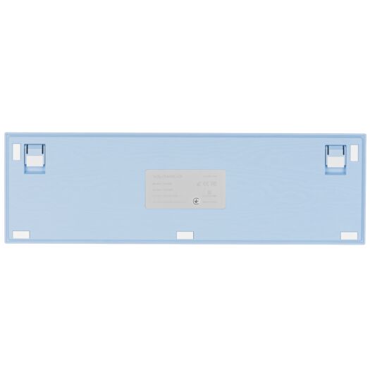 Клавіатура Varmilo VA108M Sea Melody має оригінальний дизайн в біло-блакитних тонах і нанесений на клавішу пробіл малюнок кита. Ковпачки виготовлені з високоміцного пластика PBT із застосуванням dye-sublimation технології з вигравіруваними символами на боках, використання dye-sub дозволяє символам ніколи не стертися і ніяк не відчуватися при натисканні, а якісний PBT пластик гарантує надійність і довговічність, клавіші мають злегка текстурований верх і приємні на дотик.
