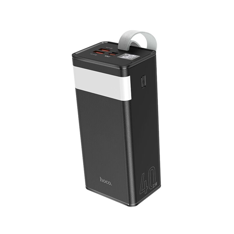 Hoco J86 Powermaster – зовнішній акумулятор на 40000 мАг, здатний заряджати 3 телефони одночасно. Сам повербанк заряджається кабелем micro-USB або Type-C. Завдяки підтримці найпоширеніших технологій швидкого заряджання Quick Charge 3.0 і Power Delivery, на зарядку сумісних моделей гаджетів і самої портативної батареї йде менше часу. Поточний рівень заряду у відсотках відображається на маленькому екрані. Вбудований ліхтар не лише допоможе висвітлити темний простір, а й замінить настільну лампу.