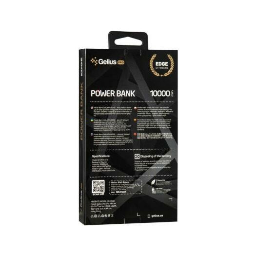Пристрій має ємність 10000 мА*г. Тому повербенк зможе підтримувати автономність ваших гаджетів досить довго. Зовнішній акумулятор має компактні розміри, незважаючи на свою велику ємність, має кнопку включення та світлодіодний індикатор, що дозволяє тримати на контролі рівень заряду пристрою. Edge – просто незамінний гаджет у подорожах та повсякденному житті.