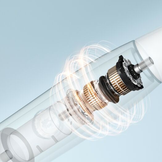 Ефективність електричної зубної щітки перевищує стандартну завдяки мотору, який здійснює 31000 вібрацій на хвилину. Щетинки м'яко впливають на чутливі ділянки ротової порожнини, а ефект можливий за рахунок високої частоти вібрацій.Місяць без розетки