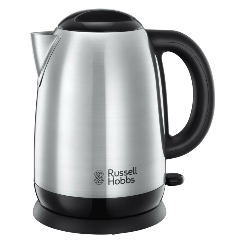 Чайник з нової лінійки Adventure, від легендарного британського бренду Russell Hobbs, притягує завжди актуальним класичним поєднанням матової сталі з чорним кольором.