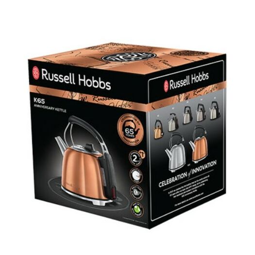 На честь 65-річчя інноваційної розробки, - створення першого в світі електричного чайника з автоматичним відключенням, ми розробили ювілейну колекцію K65. Чайник K65 має унікальну і легендарну форму першого в світі чайника, розробленого інженерами Russell Hobbs з функцією автоматичного відключення, але також поєднує в собі і максимальну функціональність - надтонка база харчування, кип'ятіння 1 чашки за 50 секунд, система «Ідеальний носик» не допустить вихлюпування окропу і утворення крапель.