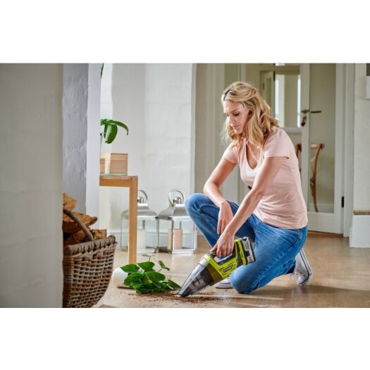 Ryobi Пилосос акумуляторний ручний ONE+ R18HV-0, 18В, 410 л/сек, solo (без АКБ та ПУ)