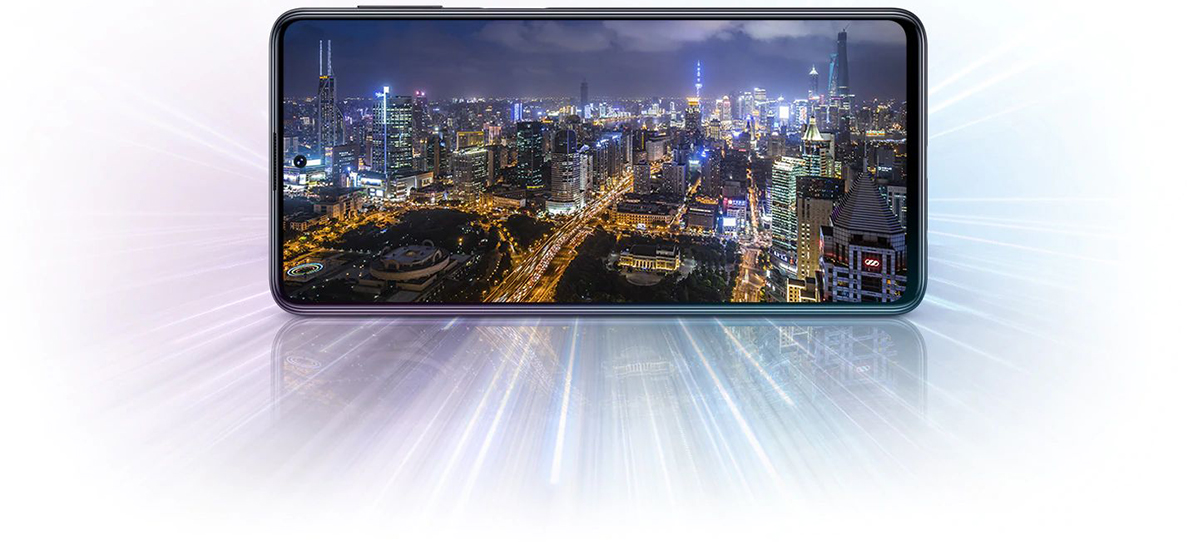 Samsung Galaxy M31s отримав великий дисплей Infinity-O з крихітним, практично непомітним отвором. FHD+ безрамковий дисплей діагоналлю 6,5 дюйма з кінематографічним співвідношенням сторін візуально робить зображення більш реальним і деталізованим. Покращена передача кольору і висока контрастність забезпечують ефект повного занурення в контент і дозволяють насолоджуватися улюбленими іграми і серіалами.