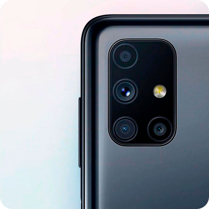 Новий Galaxy M51 здатний на все, завдяки професійній системі 4 камер. Об'єднуючи 64 МП основний об'єктив, ультраширококутний 12МП сенсор з кутом захоплення 123°, 5МП макрокамеру та 5МП камеру з датчиком глибини, він буде готовий знімати все, що вас надихає. Тепер ви зможете зафіксувати всю магію ночі і дивовижну атмосферу широких планів, наблизитеся до світу текстур та зніматимете чуттєві портрети з професійним ефектом боке.