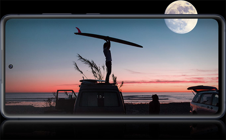 6.5-дюймовий Infinity-O Super AMOLED екран з роздільною здатністю FullHD+ відкриває для вас нові перспективи і можливості для творчості, роботи і відпочинку. Отримуйте неймовірні враження від перегляду реалістичного і чіткого відео, грайте в захоплюючі сучасні ігри, записуйте відео і спілкуйтеся, використовуючи ресурс практично безрамкового екрану з крихітним вирізом під фронтальну камеру.