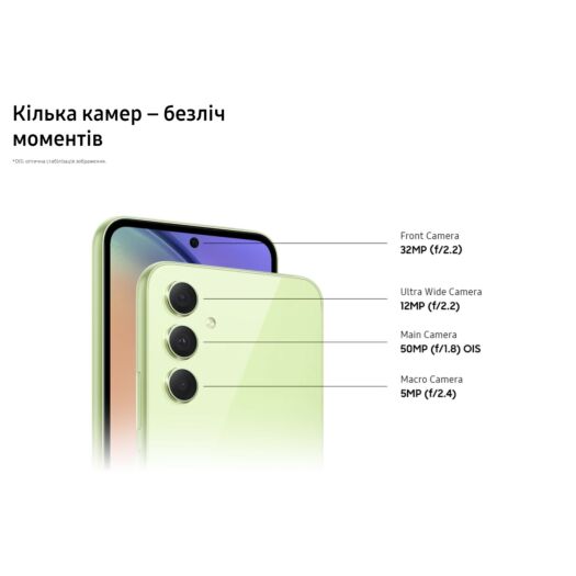 Samsung Galaxy A54 – це втілення лаконічного елегантного стилю та професійних можливостей зйомки. Потрійна основна камера 50 Мп із системою стабілізації VDIS та автофокусом знімає чудові фото та відео, які можна зробити ще краще за допомогою ФотоРемайстра. 6.4-дюймовий Infinity-O FHD+ дисплей забезпечує чітке зображення навіть сонячним днем на вулиці. А ємна батарея на 5000 мАг надасть до 2 днів автономної роботи.
