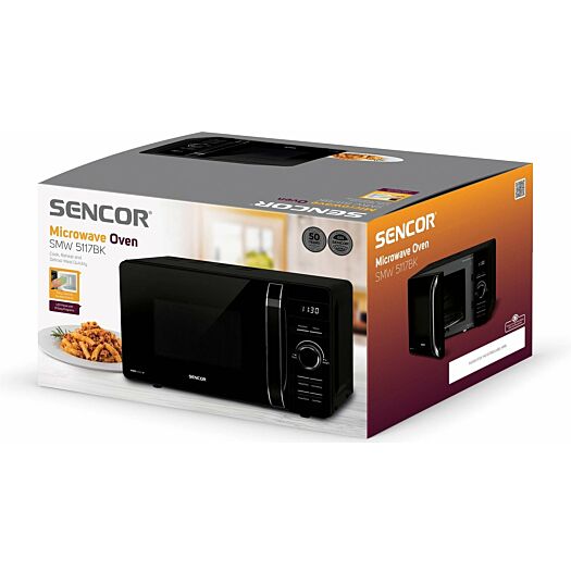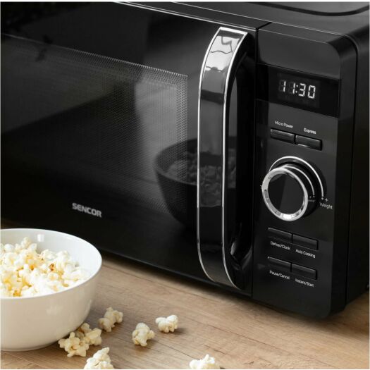 Мікрохвильова піч Sencor, 17л, 800Вт, дисплей, чорний SMW5117BK. Мікрохвильовий підігрів для простого та швидкого підігріву та приготування. Світлодіодна панель із 8 стандартними програмами. Міцне внутрішнє емальоване покриття для зручного чищення. Великий внутрішній простір: можна використовувати миски ще більшого розміру до 27 см. Функція швидкого та гігієнічного розморожування.