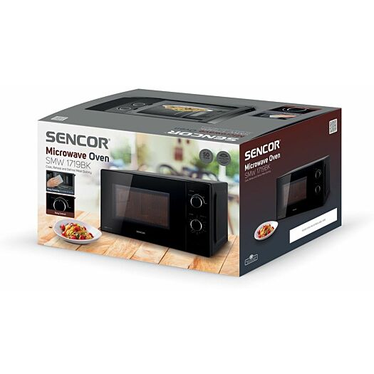 Мікрохвильова піч Sencor, 20л, 700Вт, чорний SMW1719BK. Мікрохвильовий нагрів для простого та швидкого розігріву та приготування їжі. Міцна внутрішня частина з емальованим покриттям для легкого очищення. Просте ручне керування забезпечується лише двома ручками керування.