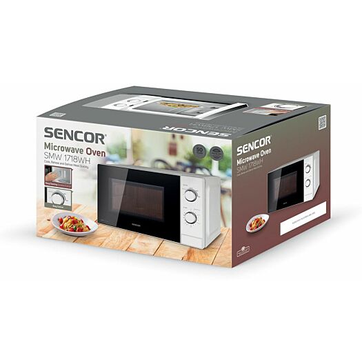Мікрохвильова піч SMW 1718WH для легкого та швидкого розігріву та приготування їжі. Міцна внутрішня поверхня з емальованим покриттям для легкого чищення. Просте ручне керування забезпечується всього двома ручками керування.