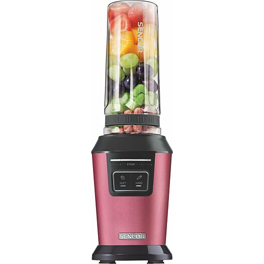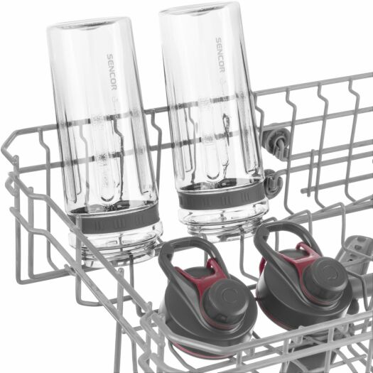 Автоматичний блендер для смузі Sencor. Дві попередньо встановлені програми. Унікальна пляшка для спорту об'ємом 0,6 л підходить для перенесення на тренуванні. Спеціальна вакуумна кришка дозволяє зберегти максимальний вміст поживних речовин і свіжість смаку. Пляшки виготовлені з міцного матеріалу TRITAN без вмісту BPA (PCTG)