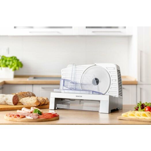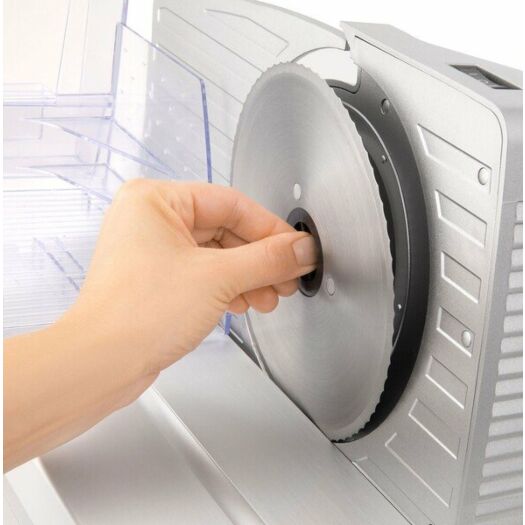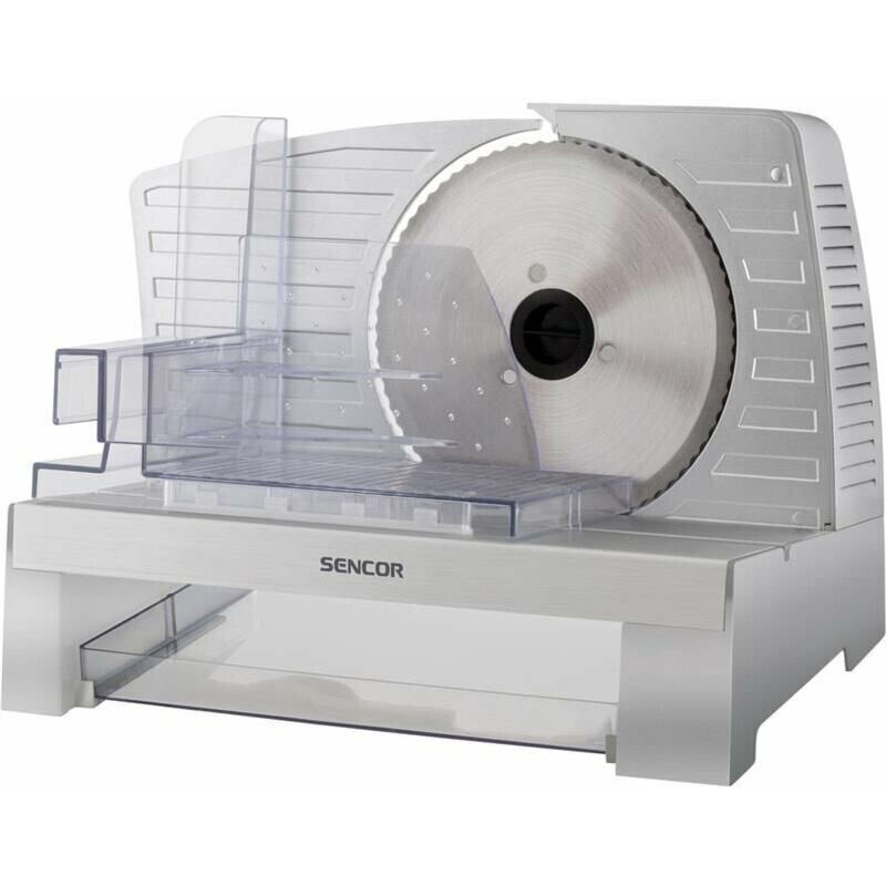 Електрична скиборізка Sencor SFS3050SS. Має знімні частини для легкого очищення і мийки (візок для харчових продуктів, штовхач для харчових продуктів, відрізний диск).