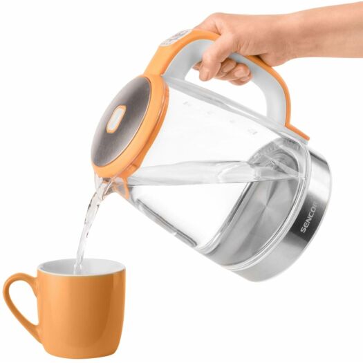 Електрочайник Sencor SWK2193OR підтримує температуру протягом 30 хвилин, оснащений фільтром бруду і вапняного нальоту, світлодіодним підсвічуванням і потрійною системою безпеки.