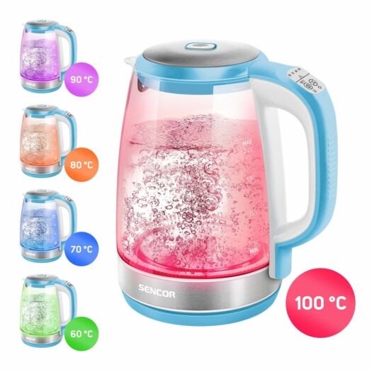 Електрочайник Sencor SWK2192BL підтримує температуру протягом 30 хвилин, оснащений фільтром бруду і вапняного нальоту, світлодіодним підсвічуванням і потрійною системою безпеки.