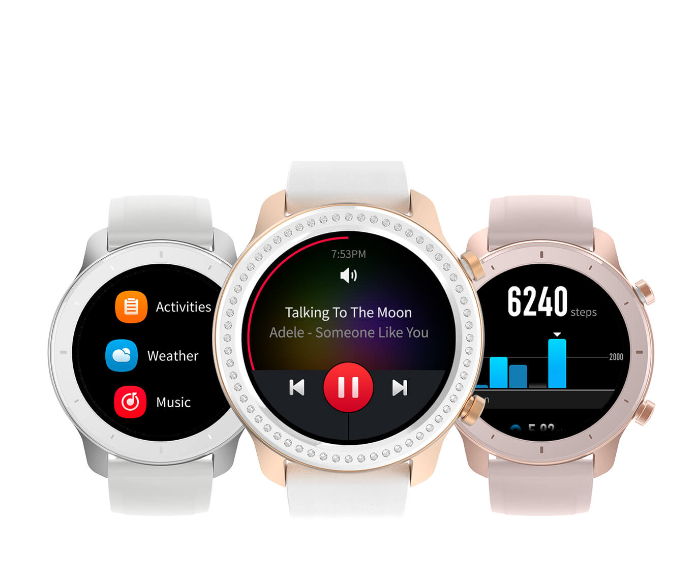 Amazfit GTR рахує, скільки кроків ви пройшли за день. Годинник визначає фази сну, щоб отримана інформація допомогла зробити відпочинок більш якісним. Ви зможете управляти вашою музикою на мобільному пристрої за допомогою годинника: міняти треки або ставити музику на паузу.