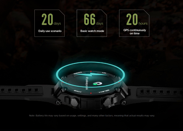 Завдяки оптимізованому енергоспоживанню і ємній батареї Amazfit T-Rex здатний пропрацювати з використанням стандартного набору функцій до 20 днів без підзарядки. Базовий режим з обмеженням доступу до функцій забезпечує до 66 днів роботи на одному заряді.