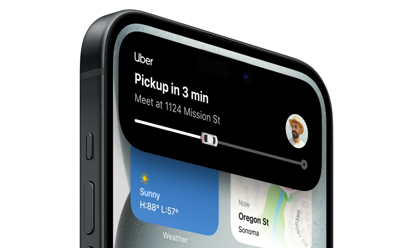 Dynamic Island відображає спливаючі сповіщення та інтерактивні дії, тому ви не пропустите їх, поки займаєтесь чимось іншим. Ви можете відстежувати свою наступну поїздку, бачити, хто дзвонить, перевіряти статус рейсу та багато іншого.