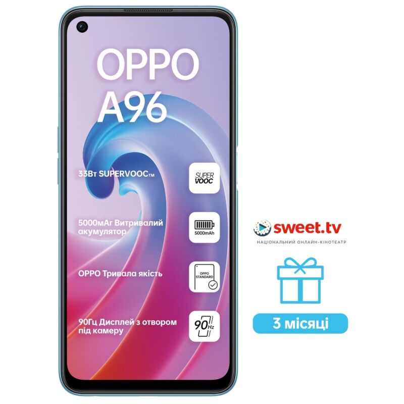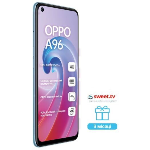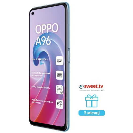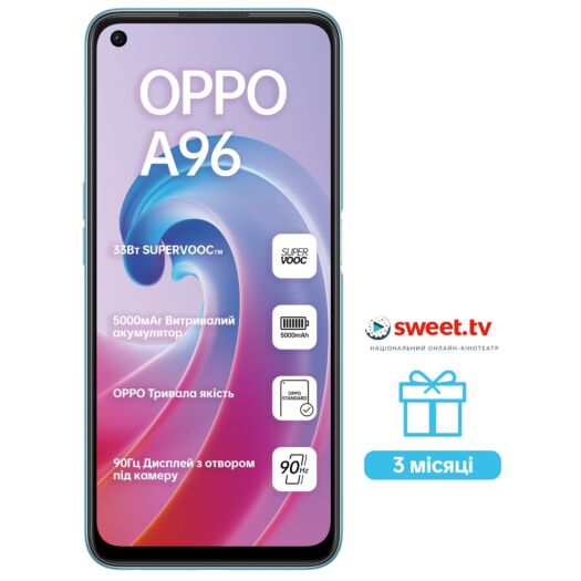 Серед новинок OPPO A96 займає особливе місце: цей смартфон є ідеальним поєднанням вишуканості, надійності та продуктивності. Вражаюча автономність забезпечується акумулятором 5000 мАг. Енерговідновлення за допомогою зарядки 33 Вт органічно доповнює концепцію. Зовнішня оболонка з перламутровою фактурою гарна та міцна, що підтверджують спецтести. Дисплей 90 Гц з роздільною здатністю FHD+ формує візуал, що зачаровує. Чіп NFC є зручним доповненням для безконтактного зв'язку.