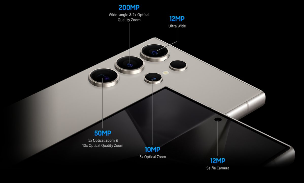 200 Мп Ширококутна камера та 2x високоякісний оптичний зум. 12 Мп Ультраширококутна камера. 50 Мп 5x оптичний зум та 10x високоякісний оптичний зум. 10 Мп 3x оптичний зум. 12 Мп Селфі-камера
