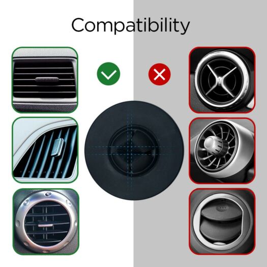 АвтотримачSpigen Kuel H12 кріпиться на решітці автомобіля і включає в себе шість маленьких неодимових магнітів. Кожен має високий ступінь намагніченості і здатний утримувати смартфон великих розмірів.