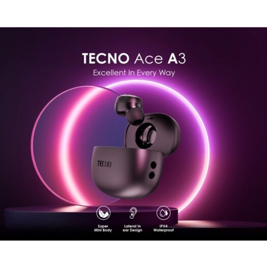 Стильна компактна гарнітура Tecno Ace A3. Зарядний кейс із магнітним контактом.