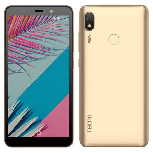 Смартфон TECNO POP 3 представлений у двох кольорах: у золотистому (Champagne gold) та чорному (Sandstone Black).