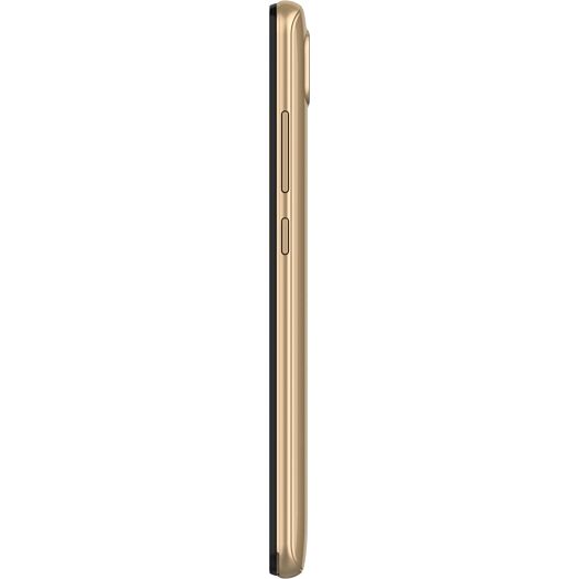 До мене потрапив смартфон у золотистому рішенні. Не дивлячись на бюджетну ціну, девайс виглядає цілком пристойно, проте очікувати від нього чогось унікального у дизайні не варто. Пластиковий матовий корпус та заокруглені кути смартфону створюють додаткову чіпкість. Телефон зручно лежить у руці. Вага смартфона становить 180 г, при габаритах: 157.5 мм x 75.6 мм x 10.35 мм. Для додаткового зчеплення і надійності у комплект входить ще й прозорий чохол.