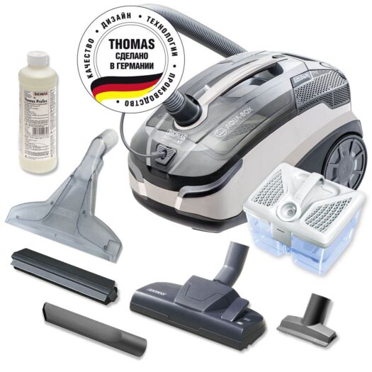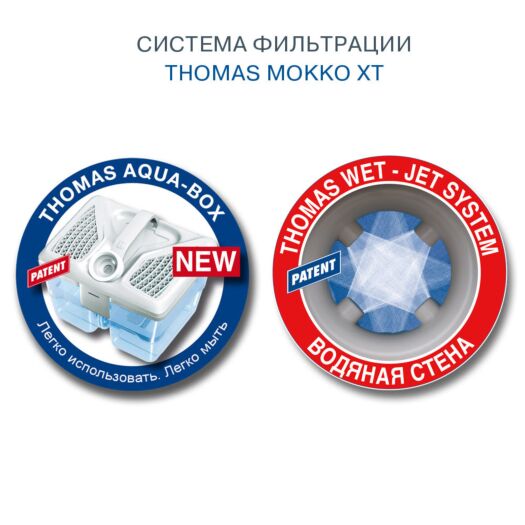 Пилосос THOMAS MOKKO XT з водяною фільтрацією не просто прибирає будинок, а й очищує повітря. У таких пилососах пил і бруд потрапляють у ємність із водою, тому під час збирання відсутній пиловий вихлоп та контакт із сухим пилом.