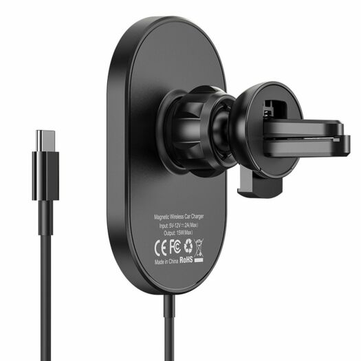 Магнітна зарядка HOCO це з'єднання магнітного кріплення і бездротової зарядки. Тримач встановлюється на вентиляційну клітку і сумісний з пристроями Apple c функцією MagSafe. Пристрій крутиться на 360 градусів, можна налаштувати тримач під зручним для себе кутом. * Магнітна функція MagSafe працює тільки з телефонами або чохлами з гаджетом Magsafe