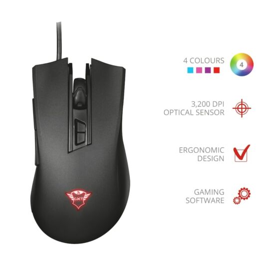 Trust GXT 121 Zeebo - комфортна мишка ергономічної форми і легкого дизайну зі світлодіодним підсвічуванням. GXT-105 поставляється з чутливими кнопками для максимальної продуктивності і ефективності. В ігровій миші Trust GXT 111 є оптичний ігровий датчик з регульованими значеннями в межах від 1200 dpi до 3200 dpi.