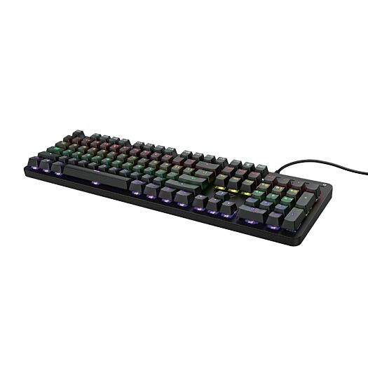 Механічна ігрова клавіатура з надійними швидкими клавішами і хвильовим райдужним підсвічуванням. Механічні червоні клавіші з лінійної конструкцією і швидким реагуванням; ідеально підходить для геймерів. Клавіші витримують до 50 мільйонів натискань. Функція розпізнавання одночасного натискання будь-якої кількості клавіш, зокрема наборів активних ігрових клавіш. В ігровому режимі вимикається клавіша Windows, щоб не заважати грі. • Ваша клавіатура — ваша індивідуальність: 14 режимів кольорового підсвічування з регульованою яскравістю.