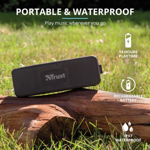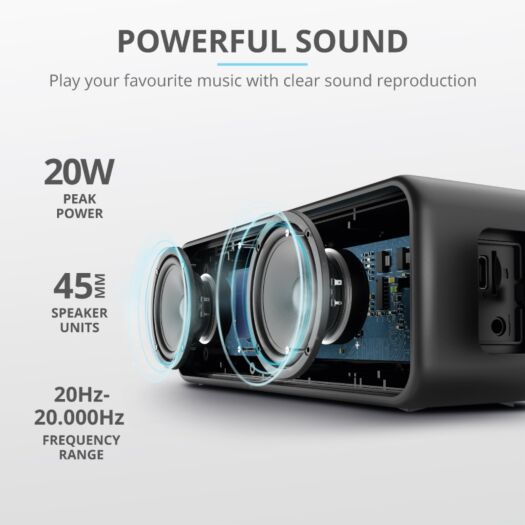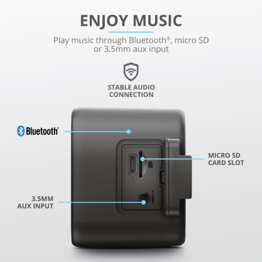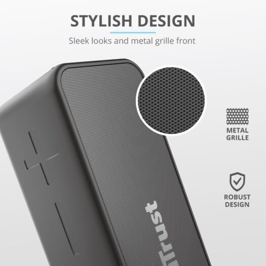Стильна Bluetooth®-колонка з насиченим і потужним звуком. Стильна колонка з металевою захисною сіткою. Потужний насичений стереозвук не залишить нікого байдужим. Для збільшення потужності можна зв'язати дві колонки по бездротовому каналу. Захист від води (IPX7): можна використовувати у басейну або на пляжі. До 14 годин відтворення без дозарядки. Кілька варіантів відтворення музики: через Bluetooth, карту micro SD і аудіороз'єм AUX. Вбудований мікрофон дозволяє здійснювати дзвінки.