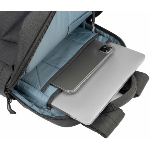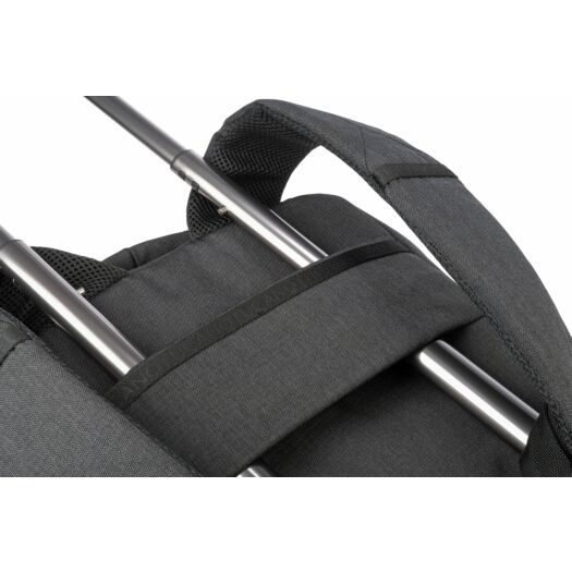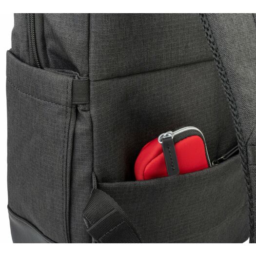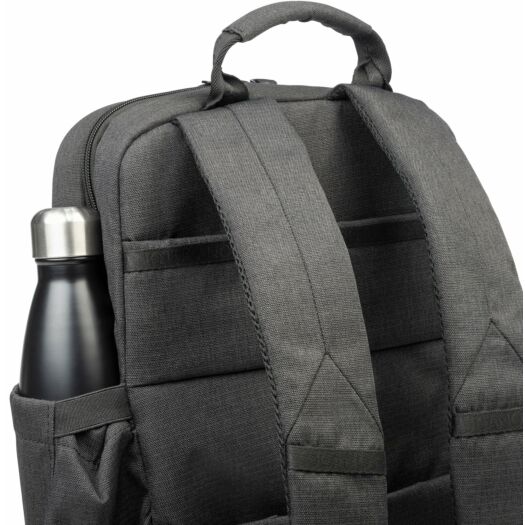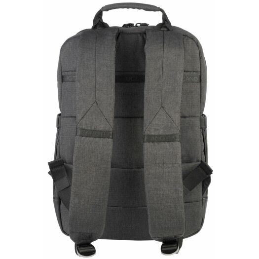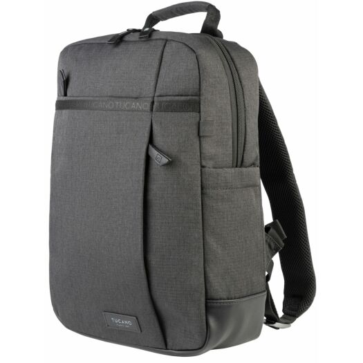 Рюкзак Tucano Ago 13 для MacBook або ноутбуків 13-14 дюймів з меланжевої тканини, виробленої з переробленого пластику. Рюкзак Ago має велике внутрішнє відділення і відмінно організовані кишені для зберігання речей. У головному відділенні є окрема кишеня, призначена для розміщення ноутбука і оснащена протиударною системою. На передній стороні є дві місткі і зручні передні кишені. З тильного боку рюкзака розміщена потайна кишеня, і кріплення для телескопічної ручки валізи.