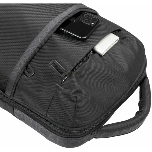 Рюкзак Tucano Astra 13 з нової колекції від Tucano. Сучасний дизайнерський рюкзак для ноутбуків з діагоналлю 13,3/14 дюймів з щільної тканини саржевого плетіння (Twill), виробленої з переробленого пластику, з обробкою у вигляді стрічки з малюнком лого Tucano. Компактний і зручний рюкзак Astra 13 має ідеальну організацію кишень і велике внутрішнє відділення. На передній стороні є дві місткі і зручні передні кишені, а на задній стороні - потайна кишеня і практичний ремінець для кріплення на телескопічній ручці чемодана.