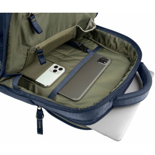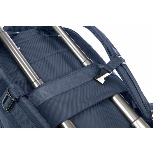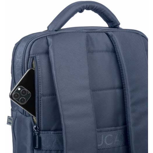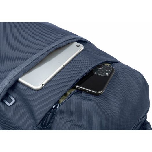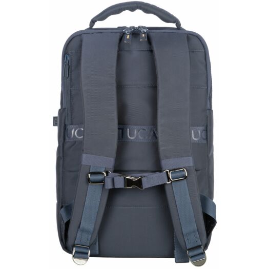 Рюкзак Tucano Astra 15 з нової колекції від Tucano. Сучасний дизайнерський рюкзак для ноутбуків з діагоналлю 15,6/16 дюймів з щільної тканини саржевого плетіння (Twill), виробленої з переробленого пластику, з оздоболенням у вигляді стрічки з принтом лого Tucano, що повторюється. Компактний і зручний рюкзак Astra 15 має ідеальну організацію кишень і 2 великих внутрішніх відділення. На передній стороні є дві місткі і зручні кишені, а на задній стороні - прихована кишеня і ремінець для кріплення рюкзака на телескопічній ручці валізи. Також на плечових ременях є нагрудний фіксатор з регулюванням по висоті.