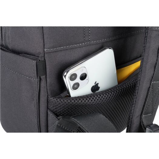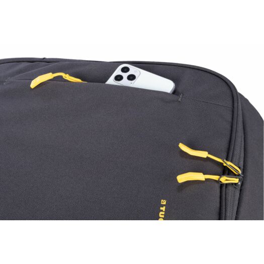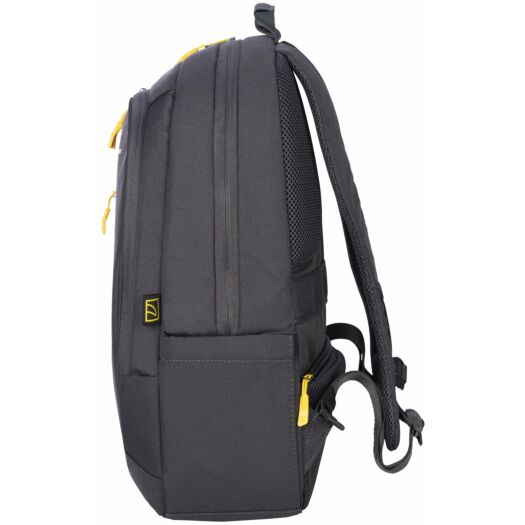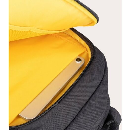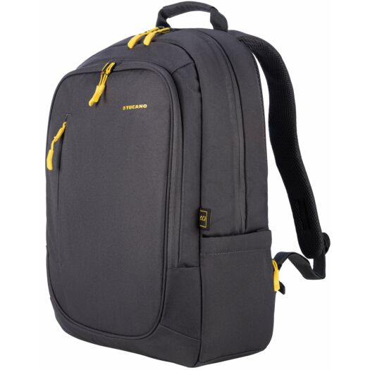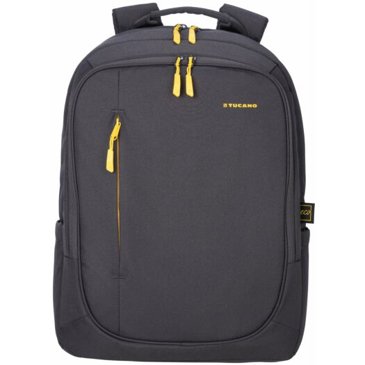 Рюкзак Tucano BIZIP 17 для ноутбуків 17". Двоколірний рюкзак для ноутбуків 17 дюймів або MacBook Pro 16 дюймів з 100% переробленої тканини, а саме з ПЕТ-пляшок. М'яке внутрішнє головне відділення з яскравою жовтою підкладкою має захисну кишеню для вашого ноутбука і планшета. Наступне відділення для документів А4, книг і зошитів. На фронтальній стороні є невелика кишеня для аксесуарів. Зі зворотнього боку розміщені регульовані плечові лямки і ремінь для кріплення до телескопічної ручки валізи і прихована кишеня на блискавці. Збоку у рюкзаку є дві зручні кишені для парасольки та пляшки з водою.