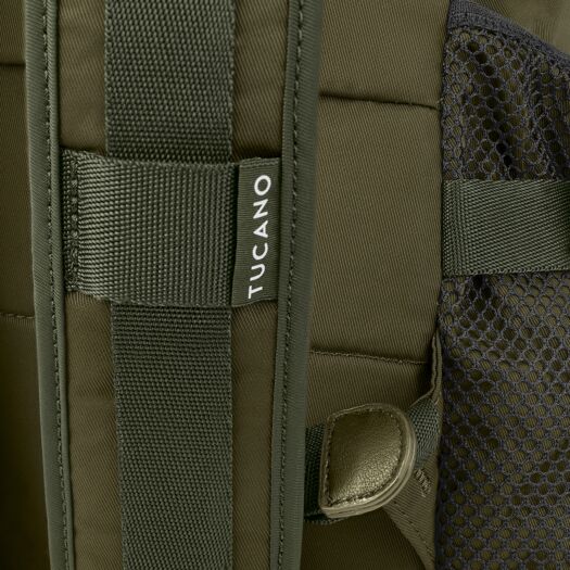 Tucano Desert 13/14 рюкзак з нової колекції 2022 року. Рюкзак у стилі мілітарі з тканини, виготовленої з переробленого пластику, із застібкою-куліскою та капюшоном/клапаном. Велике внутрішнє відділення, розмір якого регулюється двома ременями, оснащене кишенею для ноутбука. Витончений фасон і добре організовані кишені, в тому числі дві передні та дві бічні для аксесуарів, роблять його багатогранним та ідеальним для будь-якого випадку.