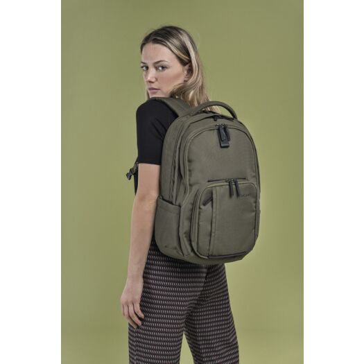 Tucano Flash 15 бізнес рюкзак з нової колекції 2022 року. Призначений для перенесення ноутбука з діагоналлю екрану 15,6/16 дюймів або MacBook Pro 16 дюймів. Виготовлений із переробленого пластику. Декор зовнішніх деталей з еко шкіри, і три відділення, що закриваються блискавками.