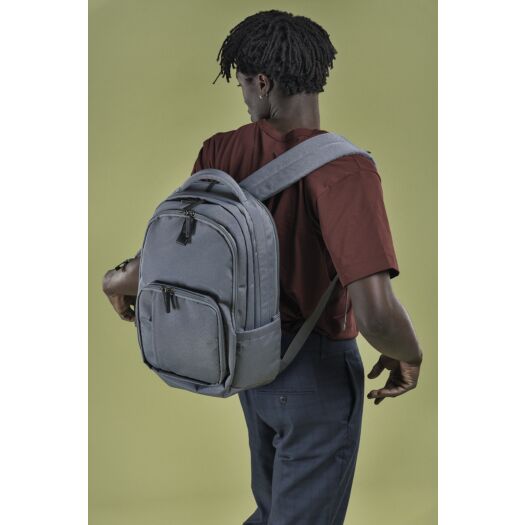 Tucano Flash 15 бізнес рюкзак з нової колекції 2022 року. Призначений для перенесення ноутбука з діагоналлю екрану 15,6/16 дюймів або MacBook Pro 16 дюймів. Виготовлений із переробленого пластику. Декор зовнішніх деталей з еко шкіри, і три відділення, що закриваються блискавками.