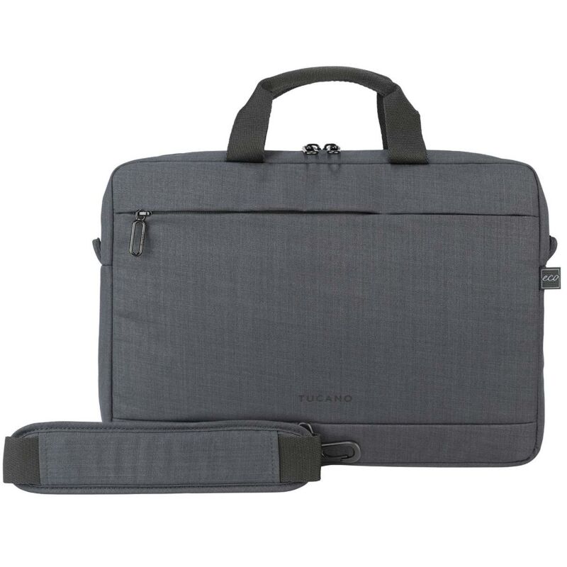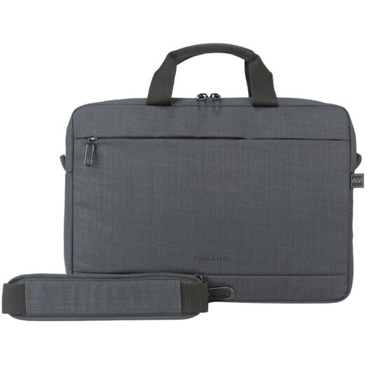 Виготовлена з переробленого пластику. Завдяки просторому центральному відділенню, сумка Tucano Stop оснащена окремою внутрішньою кишенею для ноутбуку та планшету, а також зовнішньою передньою кишенею для аксесуарів.