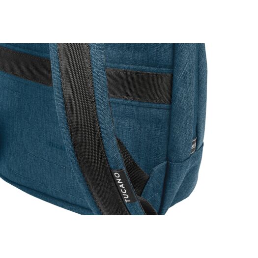 Невеликий спортивний рюкзак Tucano Ted 11 з переробленого пластику (пет пляшки). Оснащений внутрішньою кишенею для планшета і передньою кишенею для аксесуарів. Ззаду є ремінець для фіксації рюкзака на телескопічною ручці валізи.