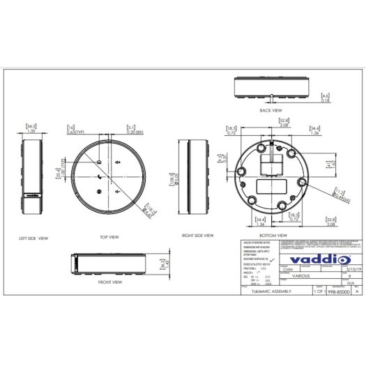 Мікрофони TableMIC підключаються до продуктів Vaddio через порти EasyMIC, щоб передавати звук професійної якості в комп'ютерну систему і забезпечувати чудову якість конференц-зв'язку. Всеспрямований мікрофон з охопленням 360 °, інтегрована система відсікання відлуння і DSP, ємнісні кнопки управління гучністю, включенням, швидким викликом + одна програмована кнопка. Підключення до EasyMIC сумісних пристроїв Vaddio кабелем CAT5 до 30 м завдовжки.
