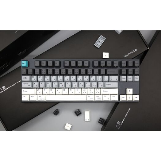 Компактна клавіатура Varmilo VA87M Yakumo має оригінальний дизайн. Ковпачки виготовлені з високоміцного пластика PBT із застосуванням dye-sublimation технології з вигравіруваними символами на боках, використання dye-sub дозволяє символам ніколи не стертися і ніяк не відчуватися при натисканні, а якісний PBT пластик гарантує надійність і довговічність, клавіші мають злегка текстурований верх і приємні на дотик.