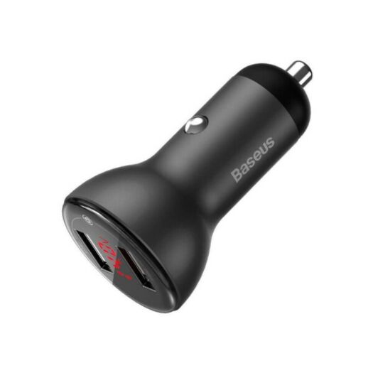 Baseus 45W Display DualU - це сучасний зарядний пристрій, який працює від автомобільного прикурювача. Він підтримує всі сучасні протоколи швидкої зарядки та здатен регулювати вихідну потужність, змінюючи напругу і силу струму. Таким чином, ваш гаджет буде заряджатися не тільки швидко, але і повністю безпечно.