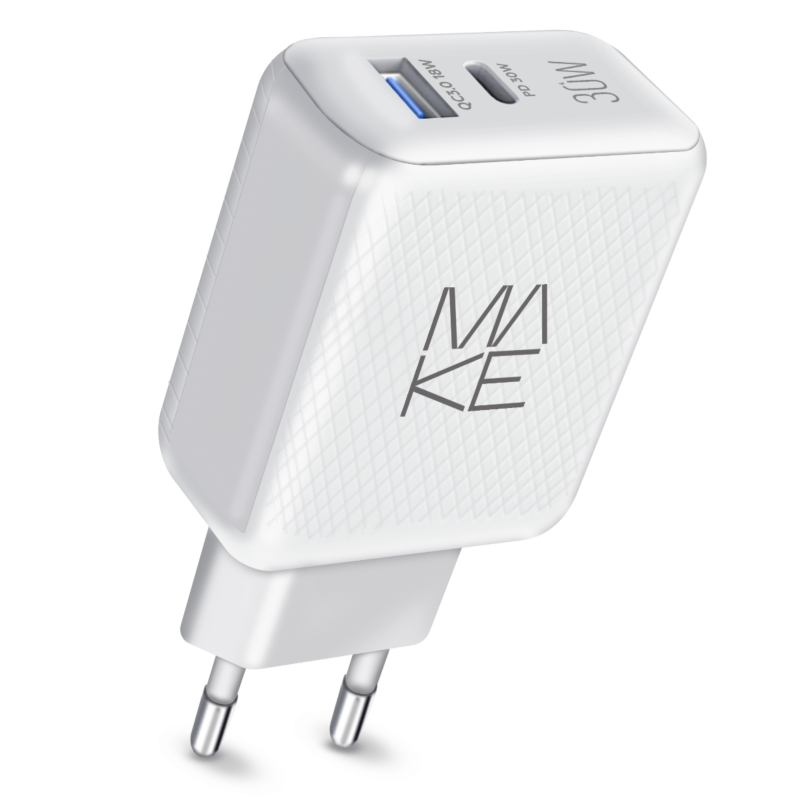 Зарядний пристрій мережевий MAKE 30W Type-C PD + USB QC3.0 White